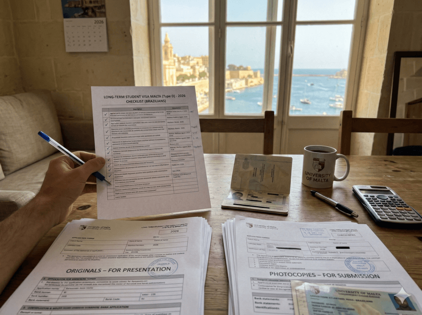 Visto de estudante em Malta 2026: o checklist de documentos para não ter o processo recusado